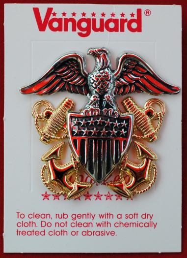 U.S Navy Officers Cap Badge large Silver and Gold colour by Vanguard Boxed only one nut to the back as purchased on base in 1999, North of Fort Storey, Virginia read more