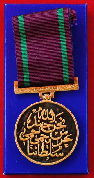 issued by the Sultanate of Oman to members of the Armed Forces, Police and MoD for 1 year of service after 1st July 1976. The medal was manufactured by Spink of London